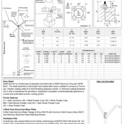 | A MGT. HGT. | B WALL GA. | C BUTT SQ. | J ARM LENGTH | TOTAL LUM. WT. | Max. EPA 90 | Max. EPA 100 | Max. EPA 110 | Max. EPA 120 | Max. EPA 130 | PART NO. |