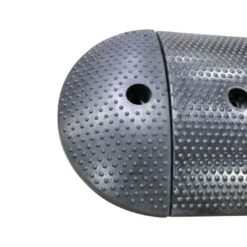 End cap for BLSB6RBNP, 6′ Speed Bump. Heavy-duty rubber installs by locking into the main piece. Secured by using anchor bolts to concrete or asphalt. Has one countersink hole to accommodate hardware. We suggest stainless steel or galvanized 6″ concrete anchors for permanent installation. McMaster or Hilti are the sources we recommend for the anchors.