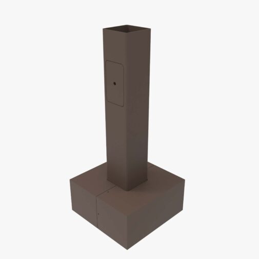 BASECOVER: Powder coated steel. Square clam shell type cover